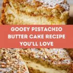This Pistachio Gooey Butter Cake is a rich, decadent dessert featuring a buttery crust topped with a creamy, sweet pistachio-infused filling. The cake is baked until golden on top yet delightfully gooey in the center, making it an irresistible treat perfect for any occasion.
