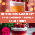 The Raspberry Passionfruit Tequila Sour is a vibrant and refreshing cocktail that perfectly balances tartness with a hint of sweetness. Its frothy texture and bright flavors make it a delightful drink for any occasion.
