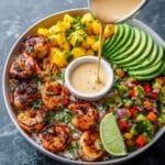 - Assemble the Bowls: Divide cooked rice into serving bowls. Arrange the grilled shrimp, sliced avocado, and mango salsa on top. Drizzle generously with the chili-lime sauce. Serve immediately for a fresh and flavorful meal.