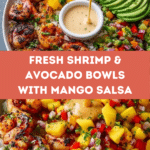 These Shrimp and Avocado Bowls with Mango Salsa & Lime-Chili sauce are a fresh and vibrant meal perfect for any season. Combining juicy grilled shrimp, creamy avocado, and a zesty mango salsa, they deliver bright flavors and satisfying textures in every bite.