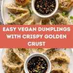 Delicious and easy-to-make simple vegan dumplings filled with a flavorful mix of shredded carrots, cabbage, mushrooms, and aromatic seasonings. These pan-fried dumplings feature a crispy bottom and tender steamed filling, served with a tangy and spicy dipping sauce, perfect as an appetizer or main dish.