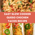 Keywords: slow cooker chicken tacos, queso chicken, easy taco recipe, cheesy chicken tacos, slow cooker dinner