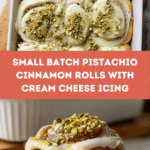 Keywords: pistachio cinnamon rolls, small batch cinnamon rolls, pistachio cream cheese icing, nutty cinnamon rolls, homemade cinnamon rolls