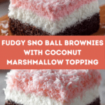 Sno Ball Brownies are a delightful twist on classic brownies, topped with a fluffy marshmallow layer and shredded coconut for a snowy, festive look. These rich, fudgy brownies combined with sweet, creamy topping make a perfect treat for any occasion.