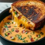 This Spicy Jalapeño Popper Soup with Grilled Cheese Dippers combines the creamy heat of jalapeños and cheeses into a comforting, flavorful soup. Enhanced with smoky paprika and cumin, it’s perfectly paired with crispy, buttery grilled cheese strips that are ideal for dipping. This recipe is a delightful twist on classic jalapeño poppers, transformed into a warm, satisfying meal.