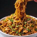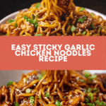 This Sticky Garlic Chicken Noodles recipe features tender chicken pieces coated in a sweet and savory garlic sauce, served with perfectly cooked noodles. The combination of honey, soy sauce, and garlic creates a sticky, flavorful glaze that clings to the chicken and noodles for a deliciously satisfying meal that’s quick to prepare and perfect for weeknight dinners.