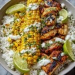 This Street Corn Chicken Rice Bowl combines juicy, spiced chicken with smoky charred corn and creamy lime crema for a vibrant and satisfying meal. It’s perfect for a quick dinner or meal prep with bold flavors inspired by classic street corn.