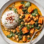 Keywords: sweet potato curry, chickpea curry, vegan curry, coconut milk curry, Indian-inspired curry, easy vegetarian dinner, one-pot curry recipe