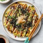 PrintVegan Okonomiyaki with Cabbage, Scallions, and Toppings Recipe