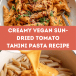 This Vegan Sun-dried Tomato Tahini Pasta is a creamy, flavorful dish that’s perfect for a quick weeknight meal. Combining the richness of tahini with the tangy depth of sun-dried tomatoes creates a sauce that feels indulgent without any dairy. It’s simple to make and satisfying for all eaters.