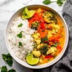 A vibrant and comforting Vegan Thai Red Curry packed with fresh vegetables simmered in a fragrant coconut milk and red curry paste sauce. This easy one-pan dish pairs perfectly with steamed rice for a wholesome and flavorful meal that’s both gluten-free and vegan-friendly.