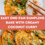 This Viral One Pan Dumplings recipe features a flavorful coconut red curry broth baked with frozen dumplings and fresh vegetables, perfect for a comforting and easy meal. The dumplings bake in a spiced coconut milk mixture with bok choy and zucchini, resulting in a deliciously aromatic and slightly crispy-topped dish that’s perfect served over jasmine rice or noodles.