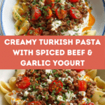 Keywords: Turkish pasta, garlic yogurt sauce, spiced beef pasta, paprika butter, feta pasta, easy Turkish recipe, comfort food, savory pasta dish