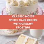 Keywords: white cake, classic cake, buttercream frosting, vanilla cake, celebration cake, homemade cake recipe